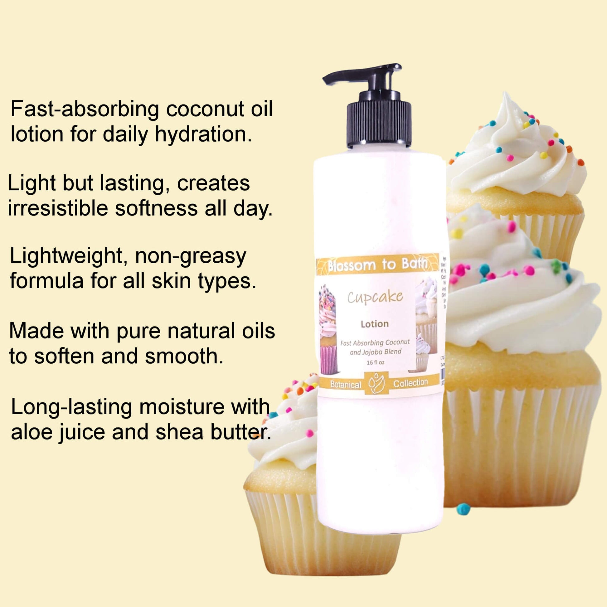 Daily Use Lotion with a Vanilla Cupcake Scent that Soaks in Quickly to Soften and Smooth Skin