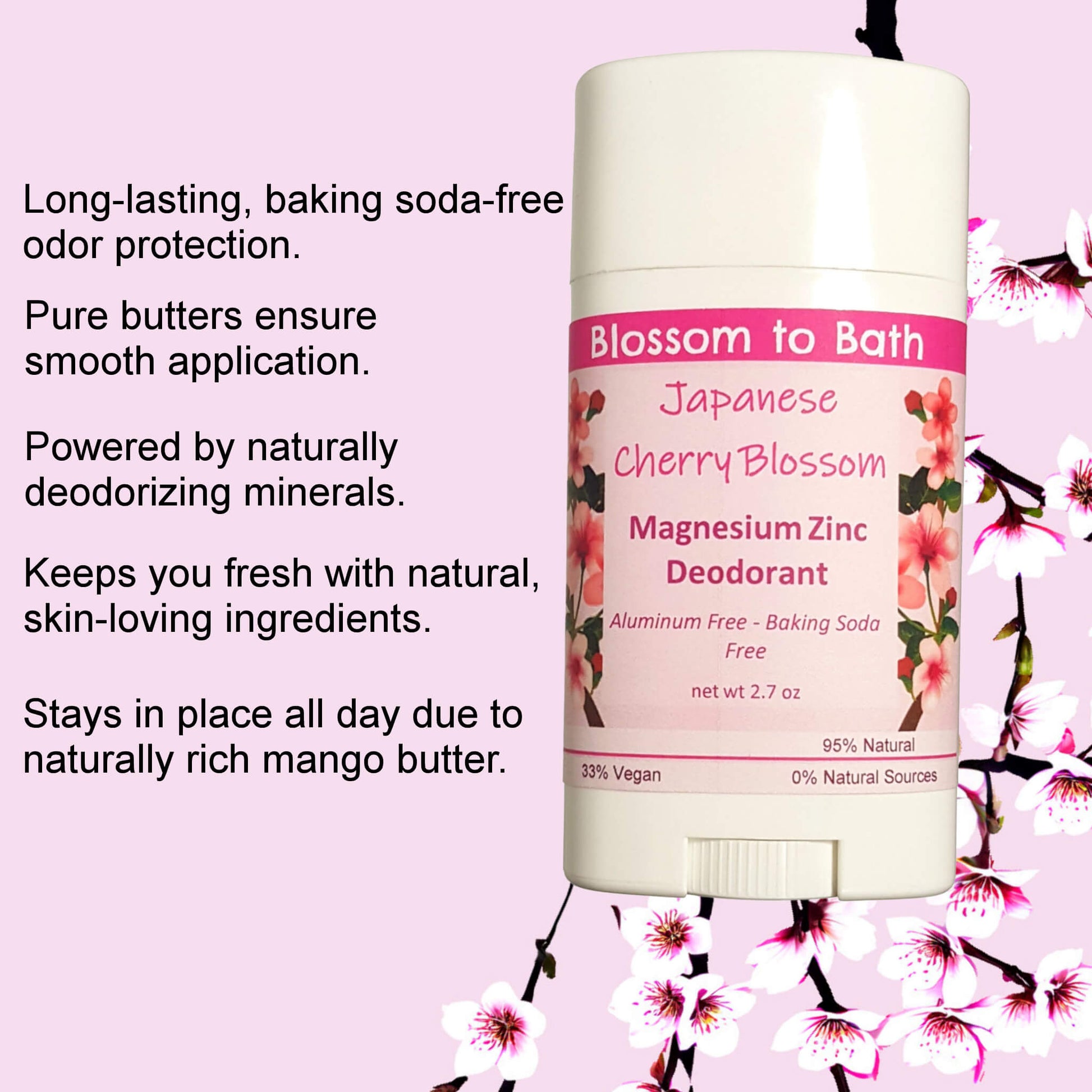 Japanese Cherry Blossom Magnesium Zinc Deodorant (2.7 ounce) - Phthalate Free Fragrance
